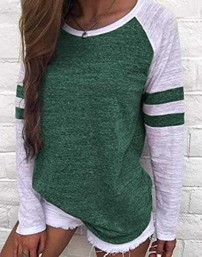 تي شيرت نسائي ماركة Locryz بأكمام طويلة ورقبة على شكل حرف V قميص بيسبول علوي