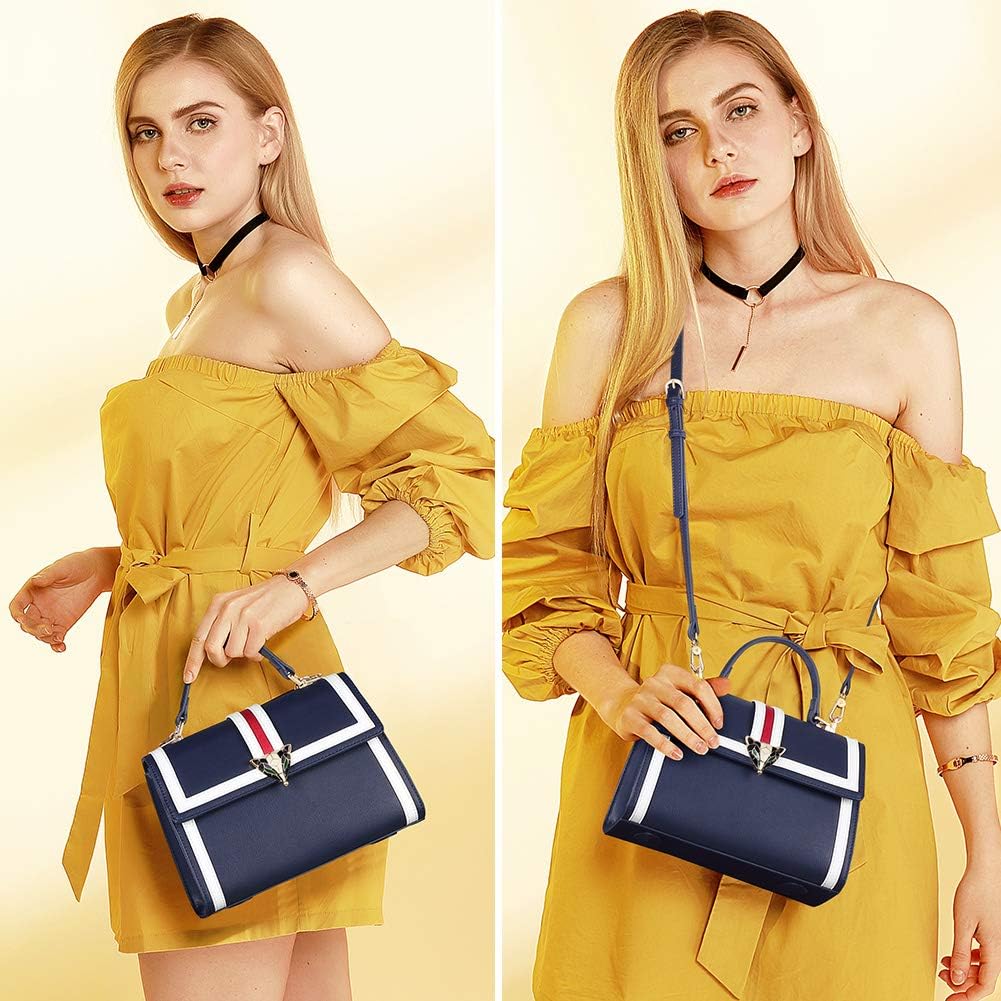 حقائب كروس جلدية للنساء، جلد أصلي مختلط الألوان تصميم السيدات أزياء حقيبة يد مع حزام كتف قابل للتعديل للنساء عارضة مقبض حقيبة رسول حقيبة يد وحقيبة يد (أزرق), ازرق داكن, قياس واحد