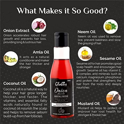 زيت الشعر بصل جلوبوس ناتشورالز 100 مل لنمو الشعر وتساقط الشعر مع جوز الهند والسمسم والخردل وزيت الأملا والنيم