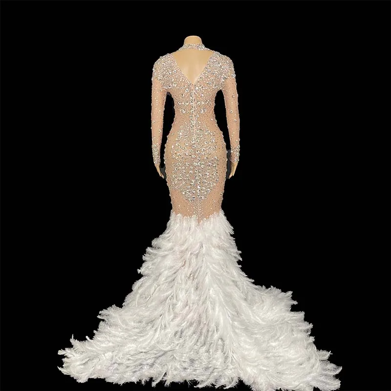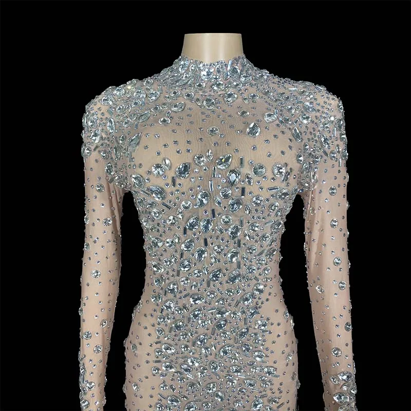 سباركلي فضي حَجَرُ الرَّايِن كبير الحجم فستان طويل مساء عيد ميلاد احتفال فاخر زي راقصة زفاف فستان لامع