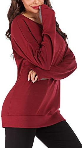 المميزات: كاجوال، كم طويل، رقبة مستديرة، فضفاض، لون سادة، بلوزات قميص تونيك، قميص بلوفر مع تصميم فتحات إبهام، خاص ولطيف.