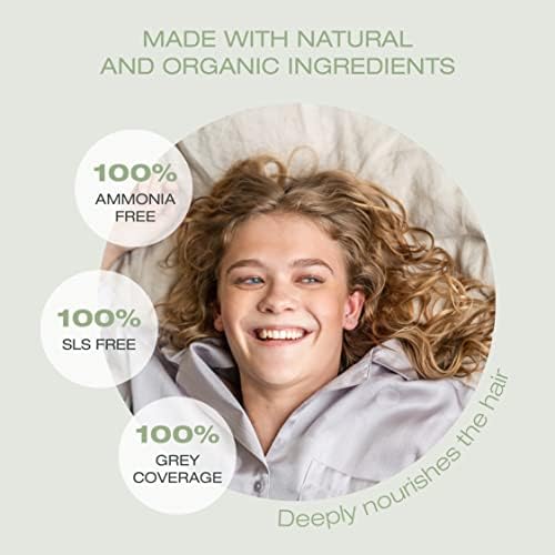 يغطي الشعر الرمادي حتى 100%. مصنوعة من مواد طبيعية لون الشعر هذا خالٍ تمامًا من الأمونيا والبارابين والريزورسينول ولوريث كبريتات الصوديوم لذلك فهو ألطف على فروة الرأس والشعر.