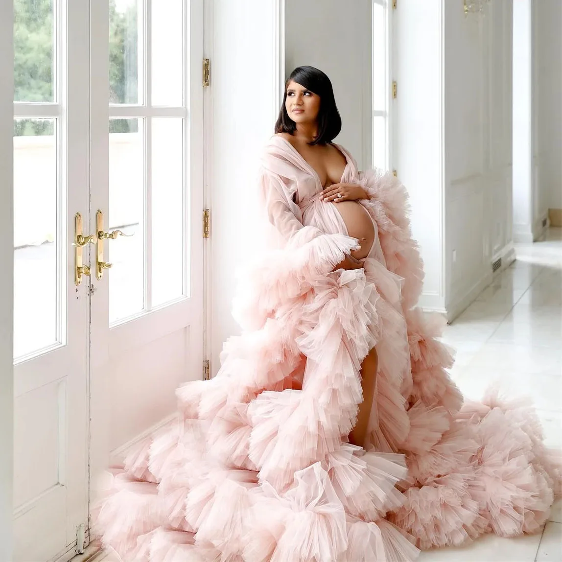 فريدة من نوعها الوردي الجلباب تكدرت تول صور النار العباءات مخصصة منتفخ تول فستان للتصوير الفوتوغرافي