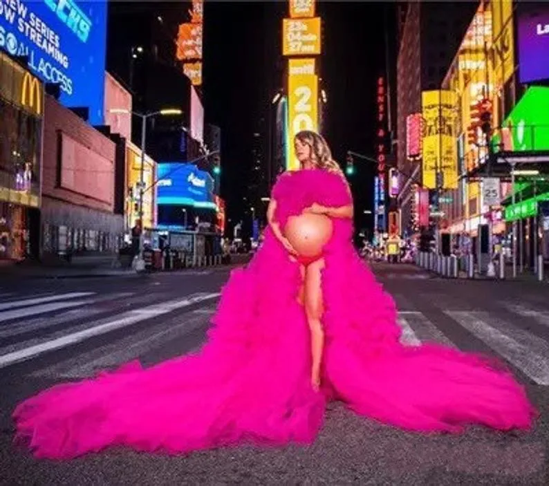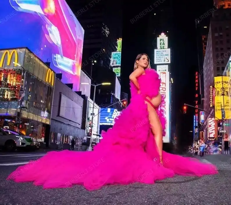 فساتين للسيدات رداء طويل من التول فوشيا عالي الجودة 2021 بدون تعريف مقاس حر فساتين نسائية عالية ومنخفضة للتصوير