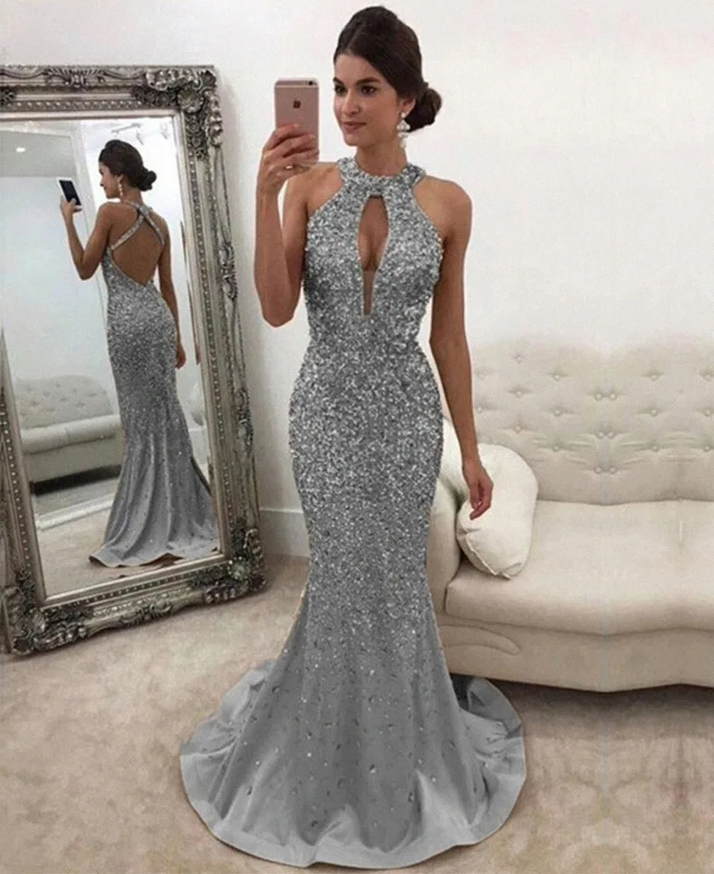 فساتين للنساء 2022 الخريف والشتاء ضيف الزفاف الجديد مساء المساء المستديرة المستديرة الأنيقة الترتر فستان ماكسي للحفلات