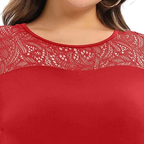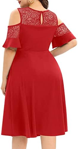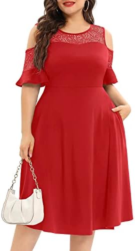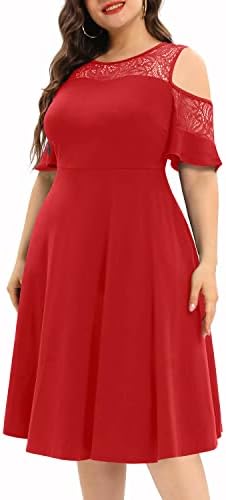 فساتين Pinup كبيرة الحجم على الظهر مباشرة ورقبة شبكية وحفلات الزفاف ميدي مع جيوب ، أحمر ، 18 زائد ، أحمر ، 48 زائد