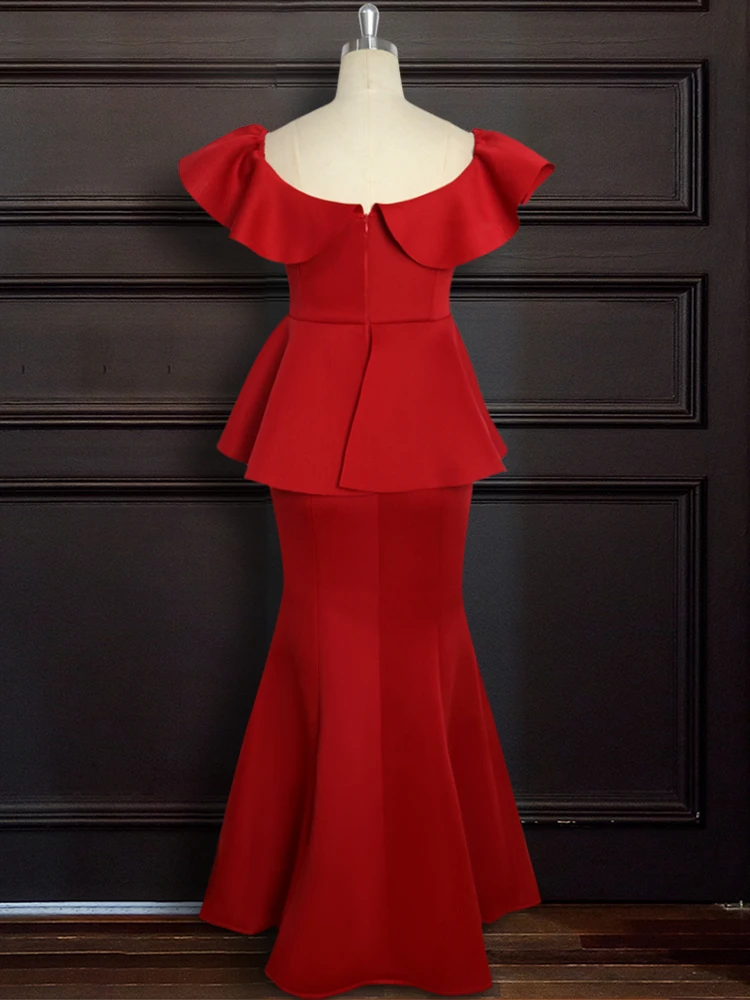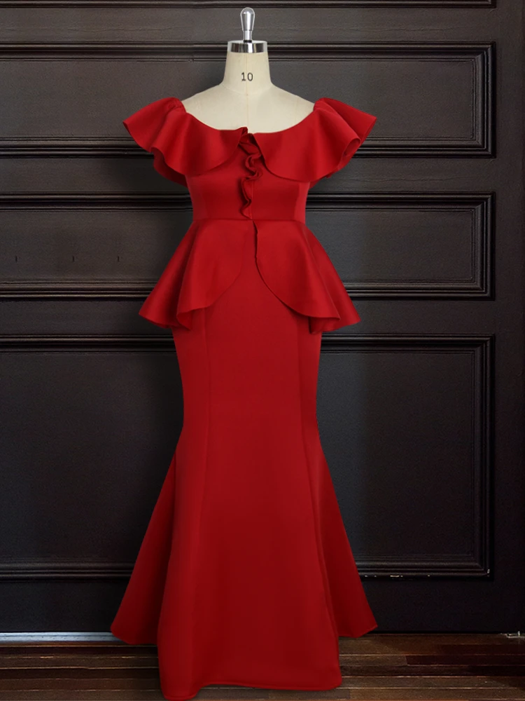 فستان أحمر الميلاد للنساء ماكسي حفلة الظهر الخلفي Bodycon كشكش أنيقة احتفال عشاء نادي مساء طويل