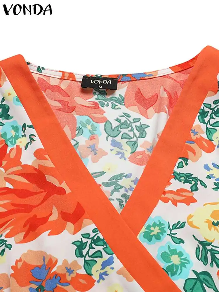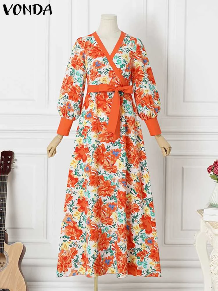 فستان الشمس المطبوع بالازهار 2022 فوندا للنساء فستان بوهيمي طويل الاقصى فتحة الرقبة فستان الشمس للعطلات فيستدو للاناث