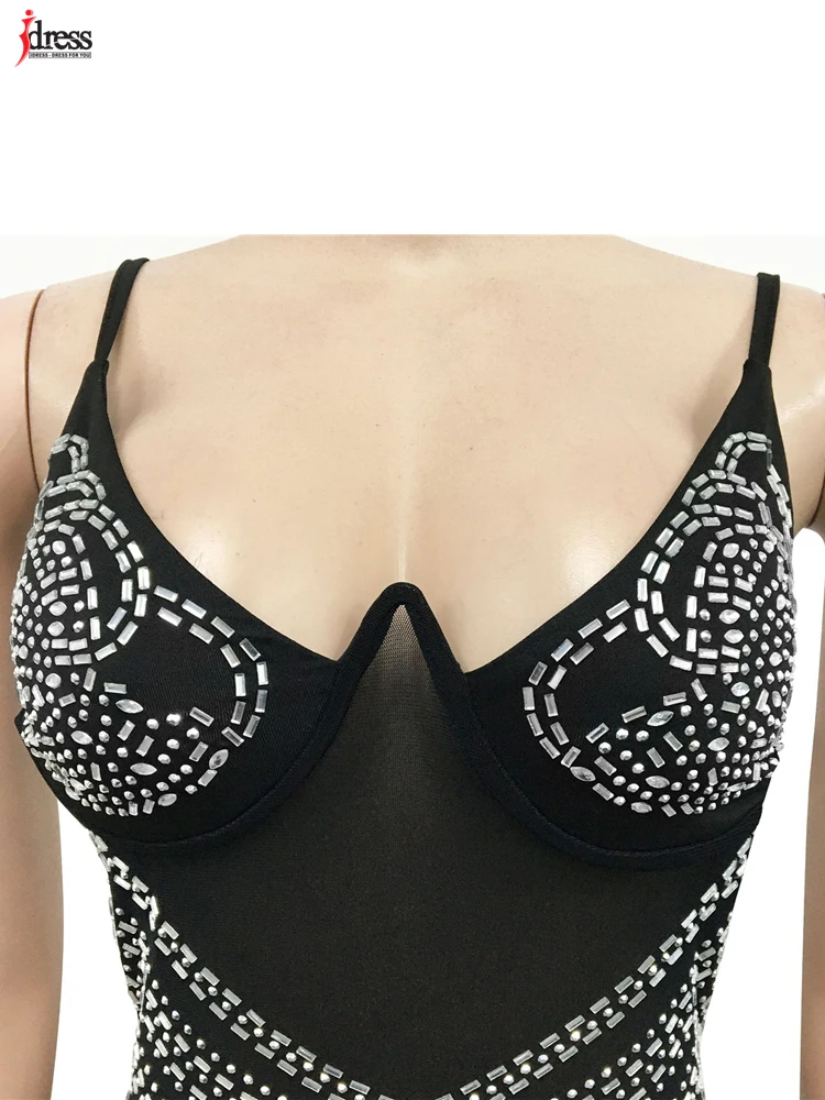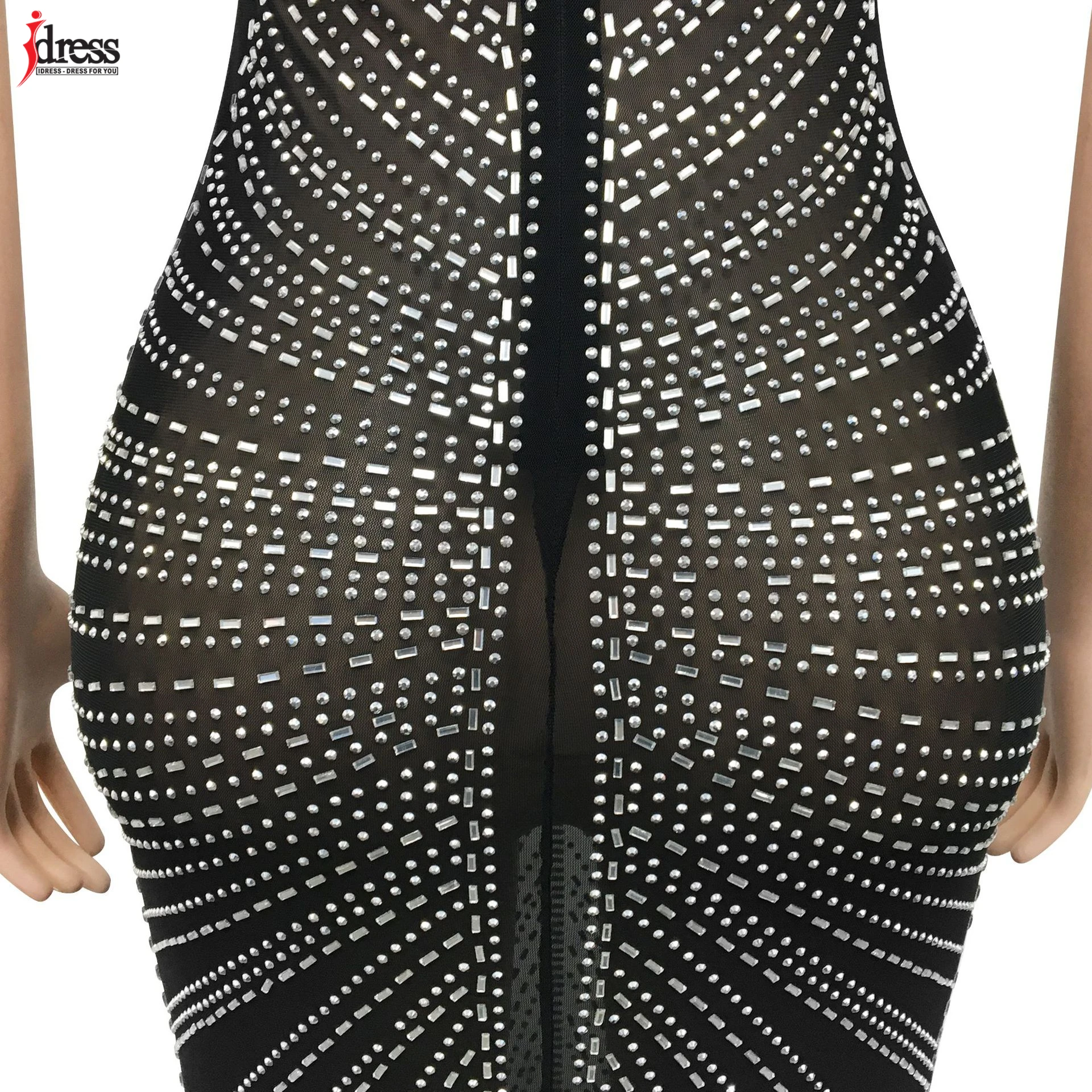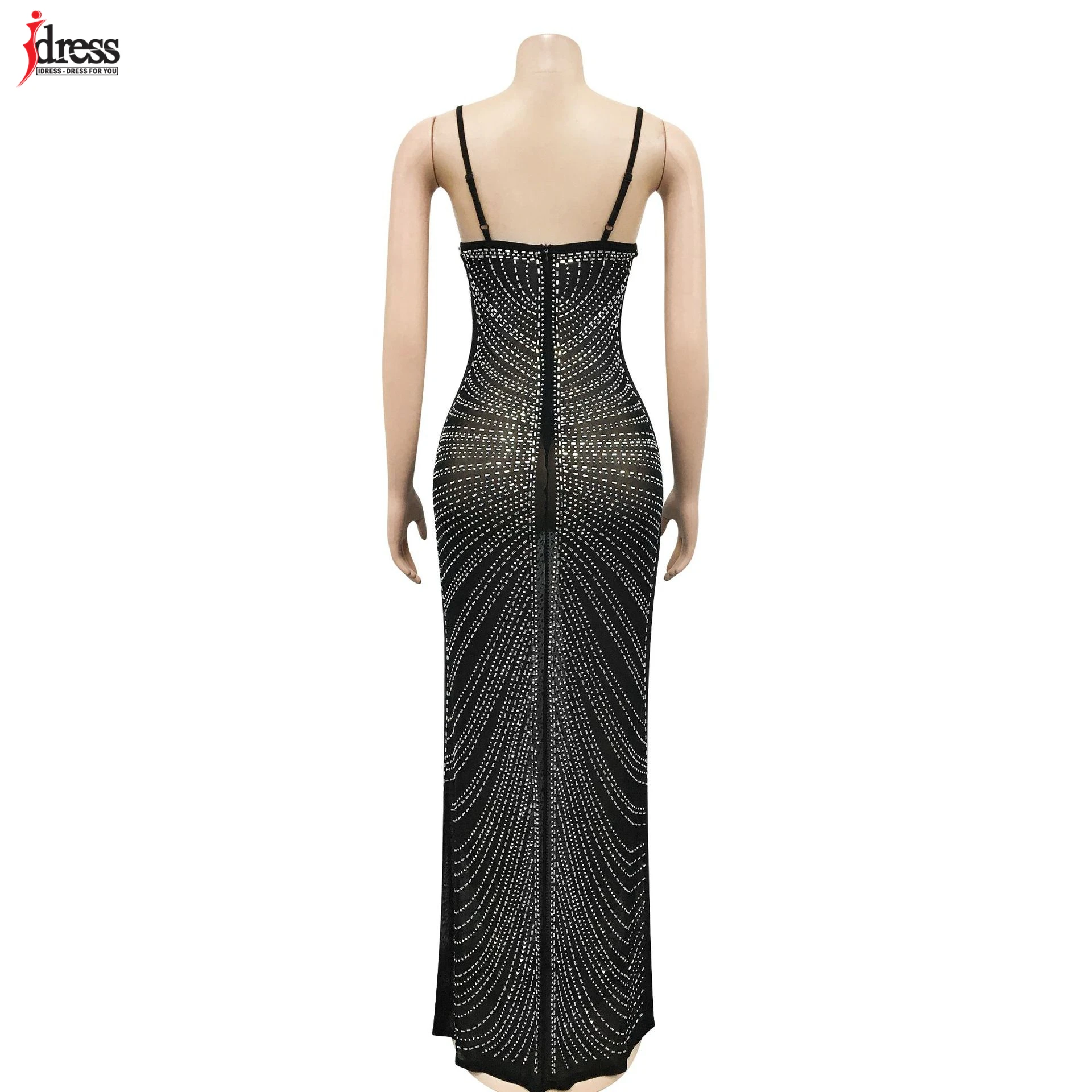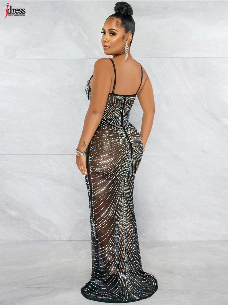 فستان جذاب من iDress مزين بشبكة لامعة ومرصع بالكريستال طويل للسيدات بحمالات رفيعة وحمالات رفيعة من الكريستال فستان حفلات المشاهير