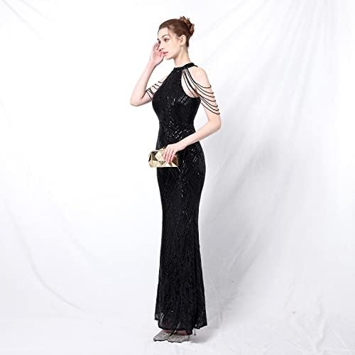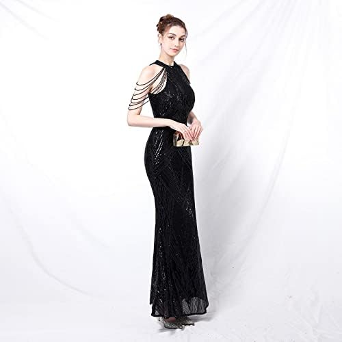 فستان حفلات نسائي انيق ، طويل بقصة ذيل السمكة ورقبة معلقة ، فستان مناسب لحفلات وحفلات الكوكتيل