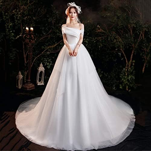 فستان زفاف مثير بدون أكتاف نسائي من الدانتيل فساتين زفاف أنيقة للعروس والحفلات الرسمية تنورة من التول جميلة (اللون: أبيض الذيل المقاس: كبير جدًا) (حياة سعيدة)