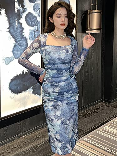 فستان سهرة نسائي أنيق من OBUMILYQ فستان ضيق شبكي من الزهور قابل للطي في الحفلات والشارع (اللون: 1 ، المقاس: 1)