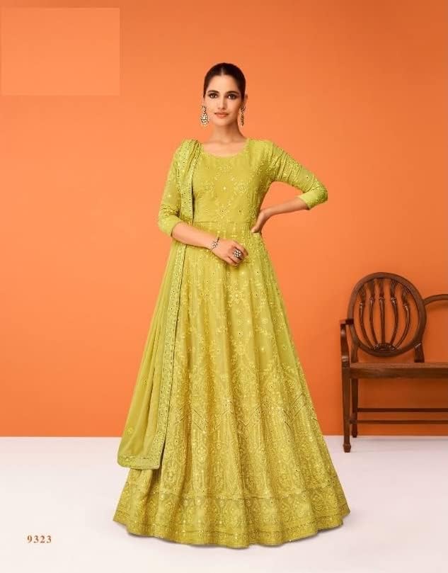 فستان سهرة هندي طويل من جورجيت مزين بالترتر والمرآة بتصميم فستان نسائي مسلم 3257