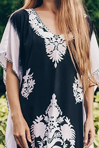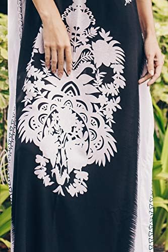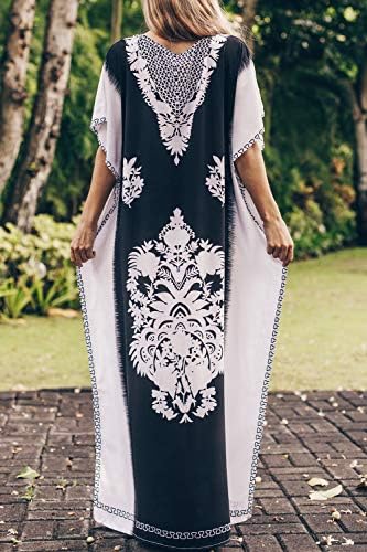 فستان شاطئ طويل ، فضفاض ، أخر المايوه بشكل قفطان بطبعات وكيمونو من ايجامب للنساء أسود وأبيض قياس واحد