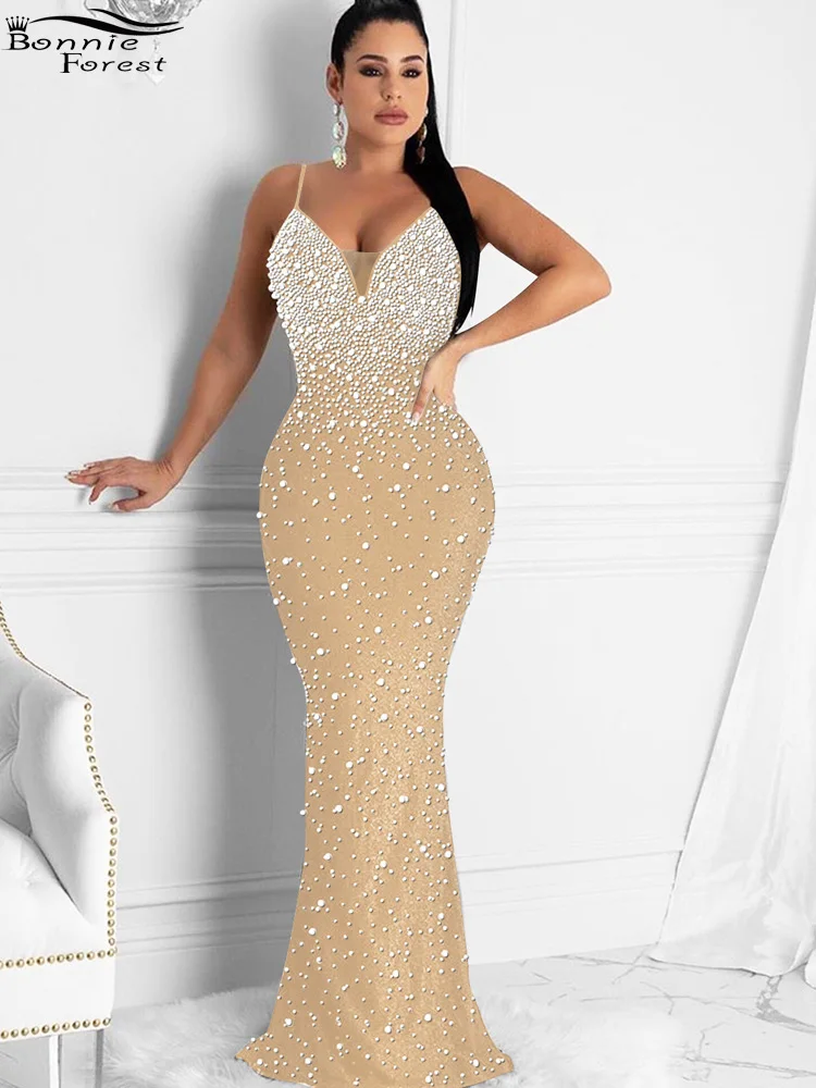 فستان طويل من Bonnie Fores بدون حمالات فستان طويل صيفي بدون أكمام ذات فتحة عالية فستان حفلات خاص ملابس Ocaasion