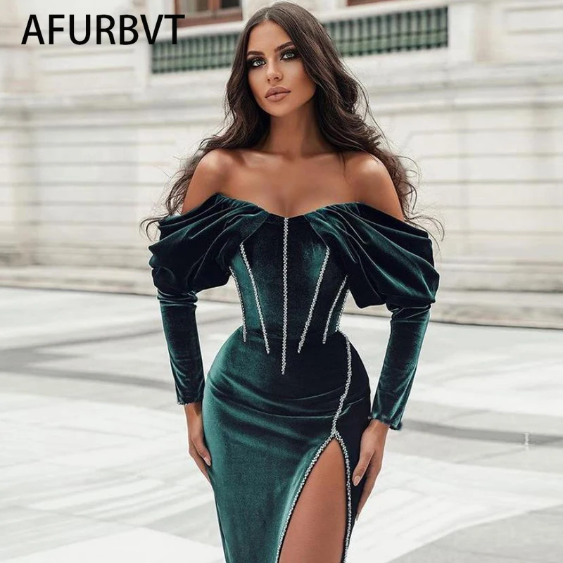 فستان للنساء الخريف الشتاء الإناث تتصدر المخملية فستان عالية اقسام ماكسي فستان عتيق مساء حفلة Vestido