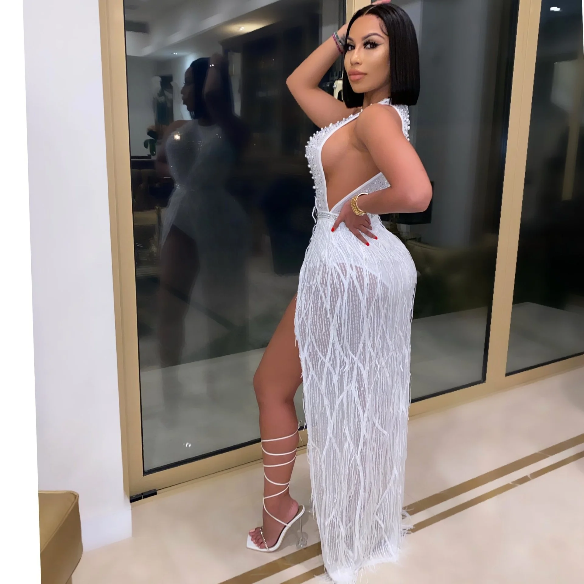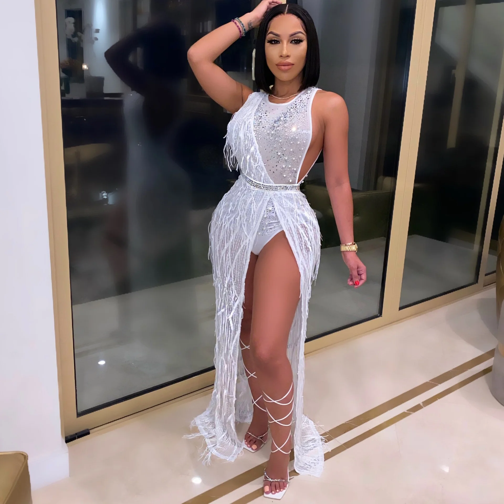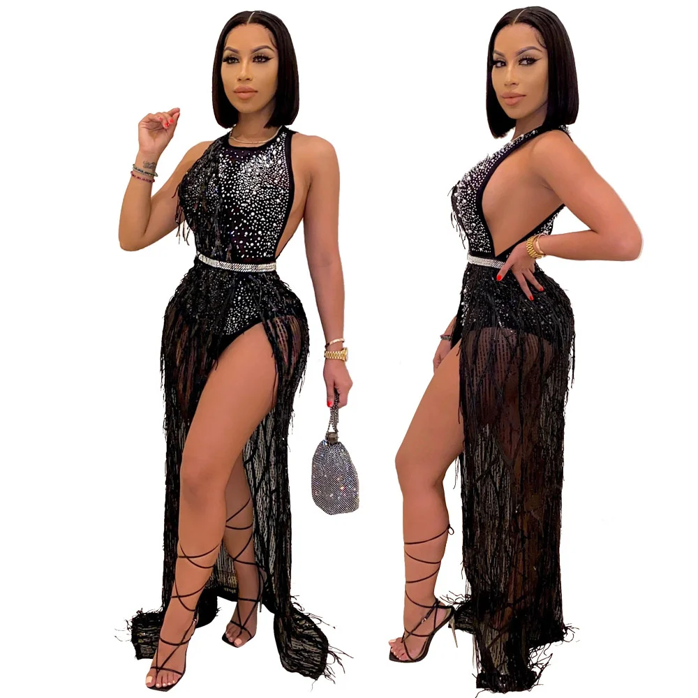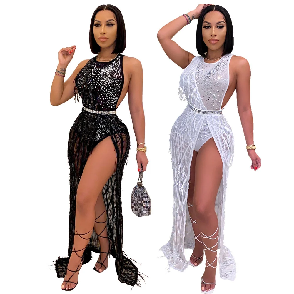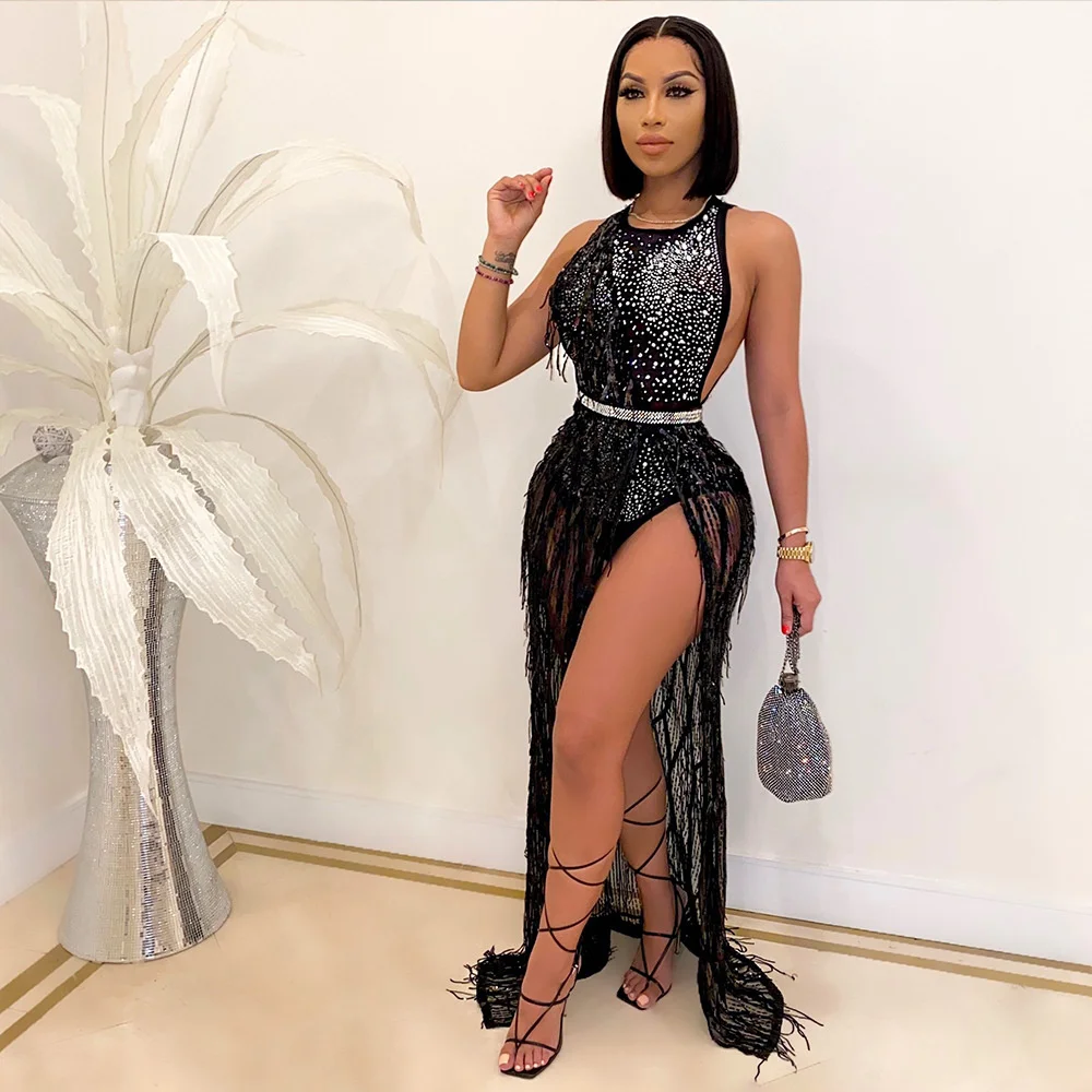 فستان ماكسي مزين بالألماس من Sylph فستان بدون أكمام بفتحة عالية للنساء 2022 Y2k ملابس نسائية بسحّاب وصل حديثًا