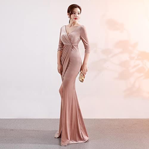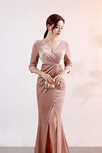 فستان سهرة مخملي بأكمام طويلة طويلة