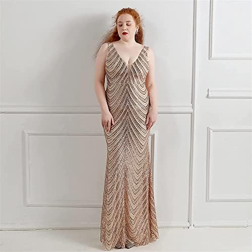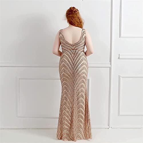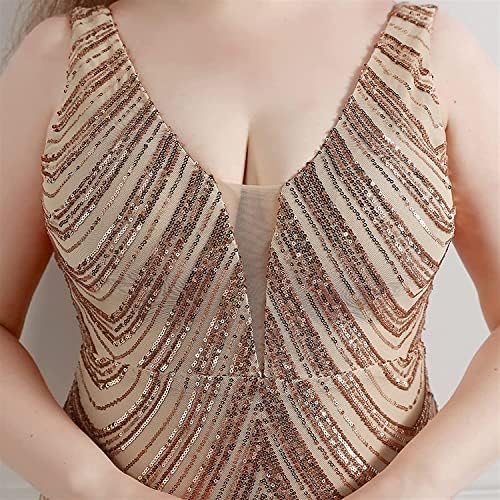 فستان نسائي طويل لامع برقبة على شكل حرف V للحفلات الراقصة والحفلات المسائية