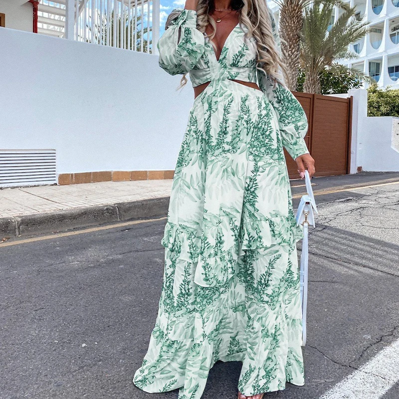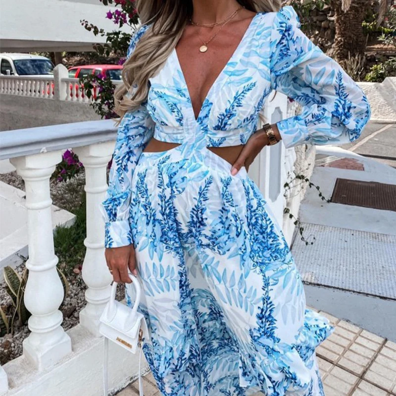 فستان نسائي طويل للشاطئ 2023 فستان صيفي فستان صيفي طويل فستان طويل الأكمام