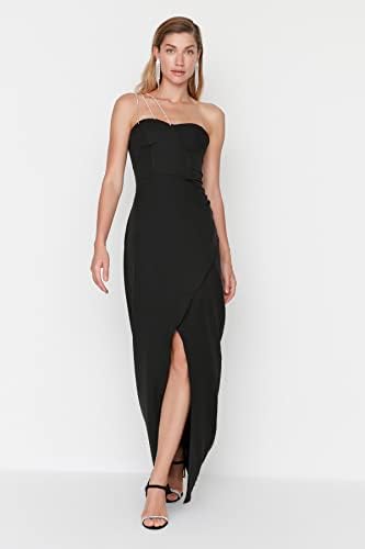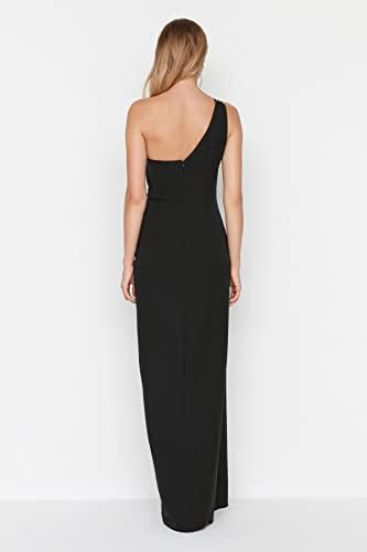 فستان نسائي طويل من ترينديول ترينديول بياقة غير متماثلة منسوج للسهرات والحفلات الموسيقية (عبوة من 1)