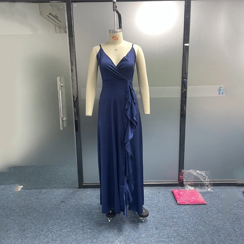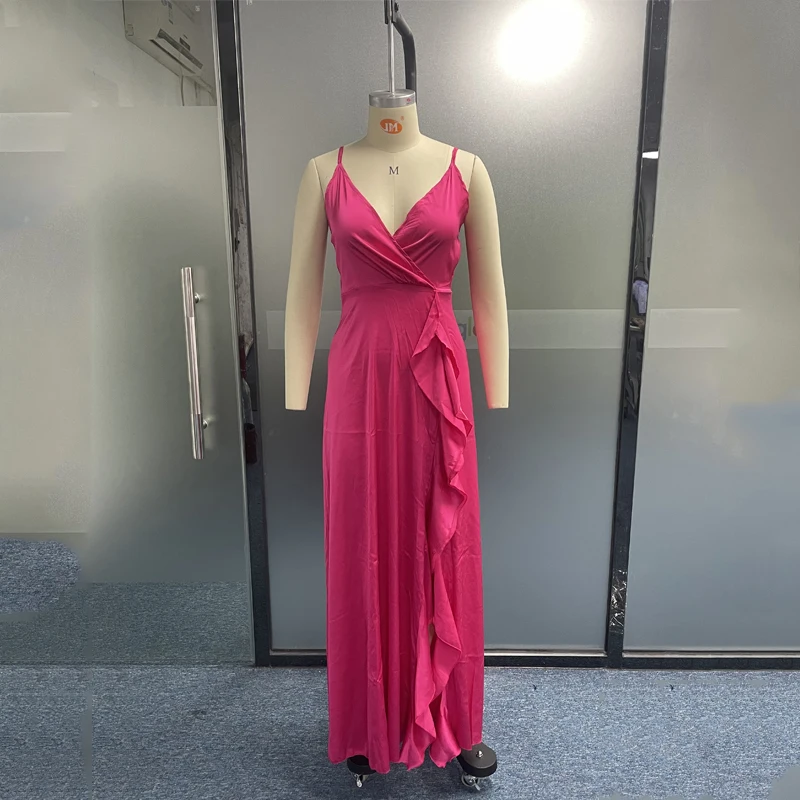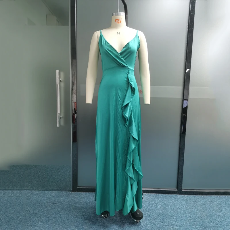 فستان نسائي ماكسي من Ellafads بدون أكمام بحزام سباغيتي متين مكشكش وفتحة رقبة على شكل V أنيق غير رسمي طويل من الساتان ملابس عالية شارع