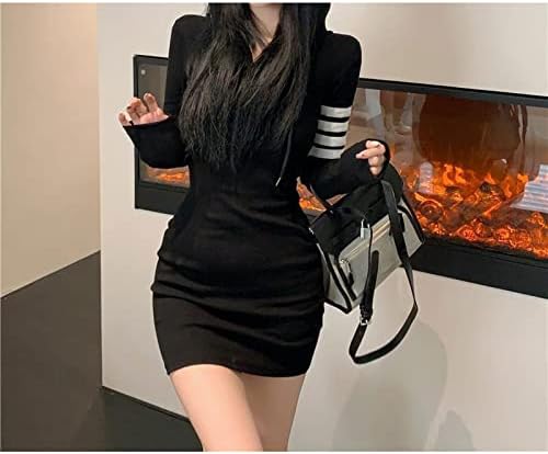 فستان TKZK نسائي خريفي ذو أكمام طويلة ورقبة على شكل حرف V للحفلات فستان قصير قصير قصير فستان قصير فستان ربيعي أنيق للحفلات (اللون: أسود، المقاس: M 45-50 كجم)