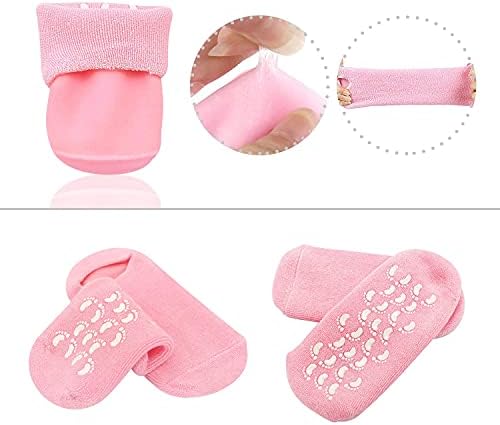 قفازات وجوارب جل مرطبة بباطن من السيليكون لعلاج وتنعيم الجفاف والعناية بالجلد، لوشن بخلاصة الصبار، لون زهري