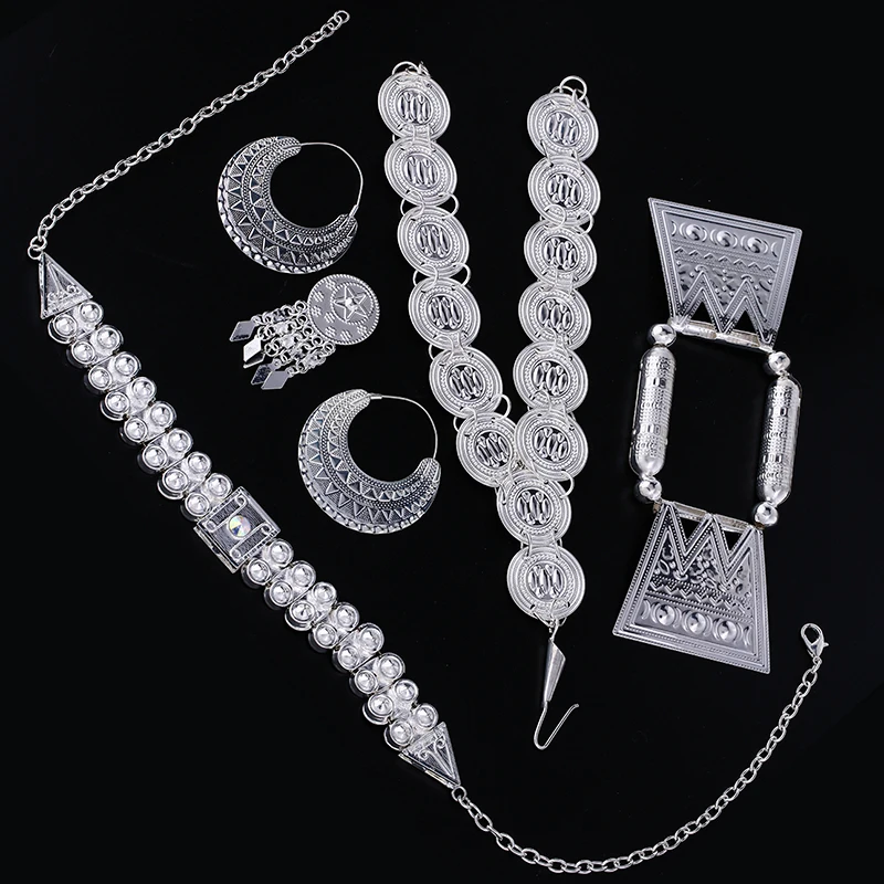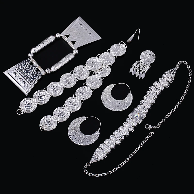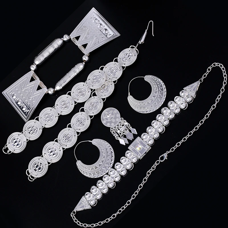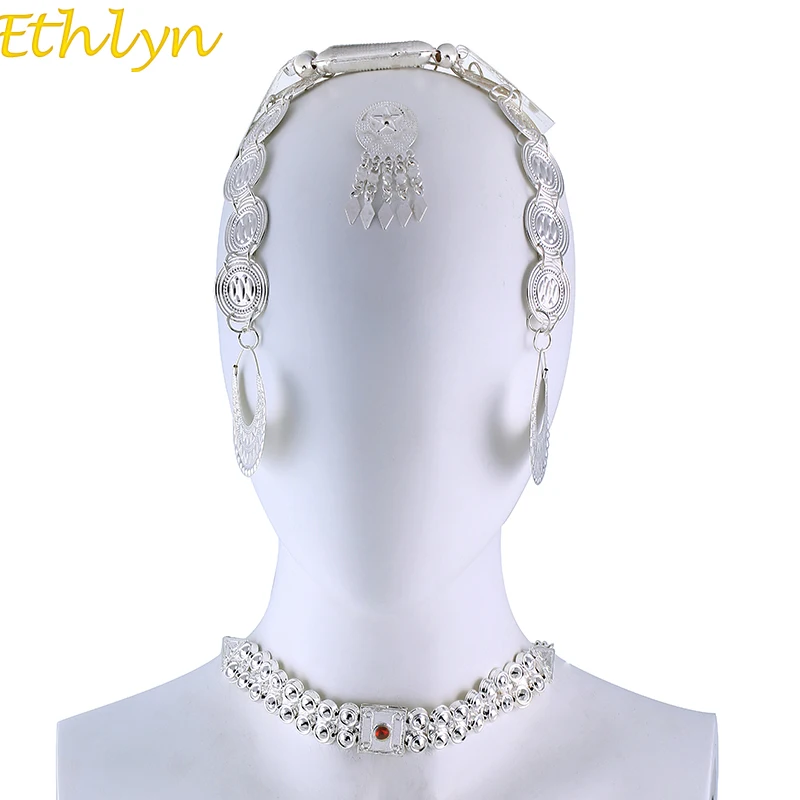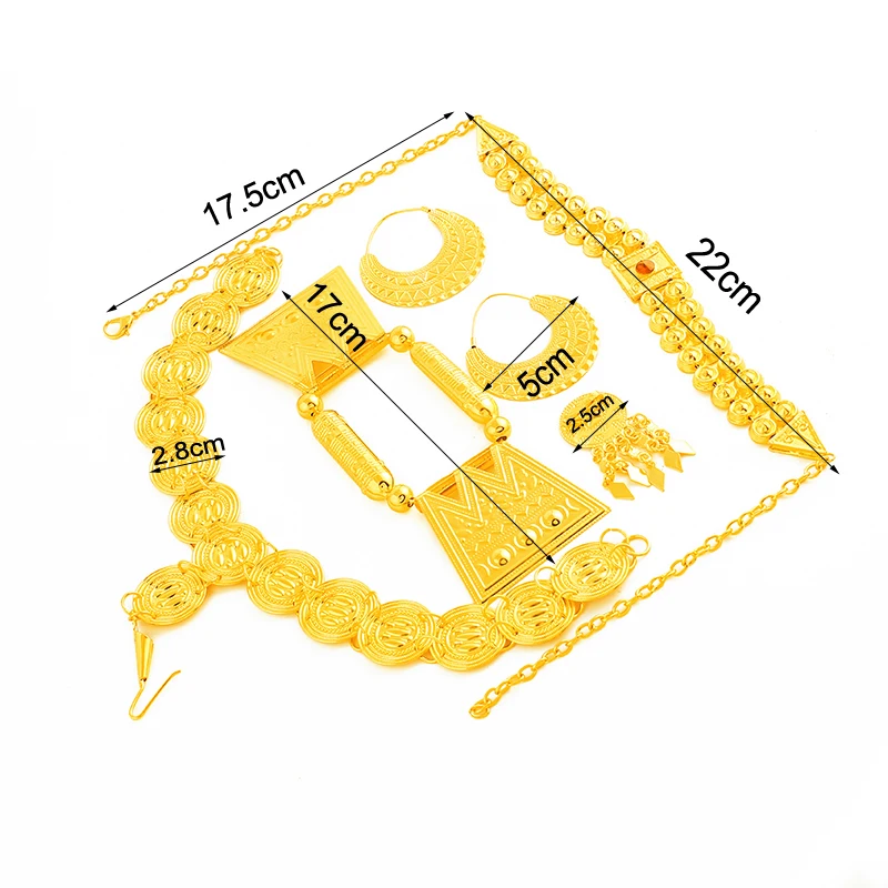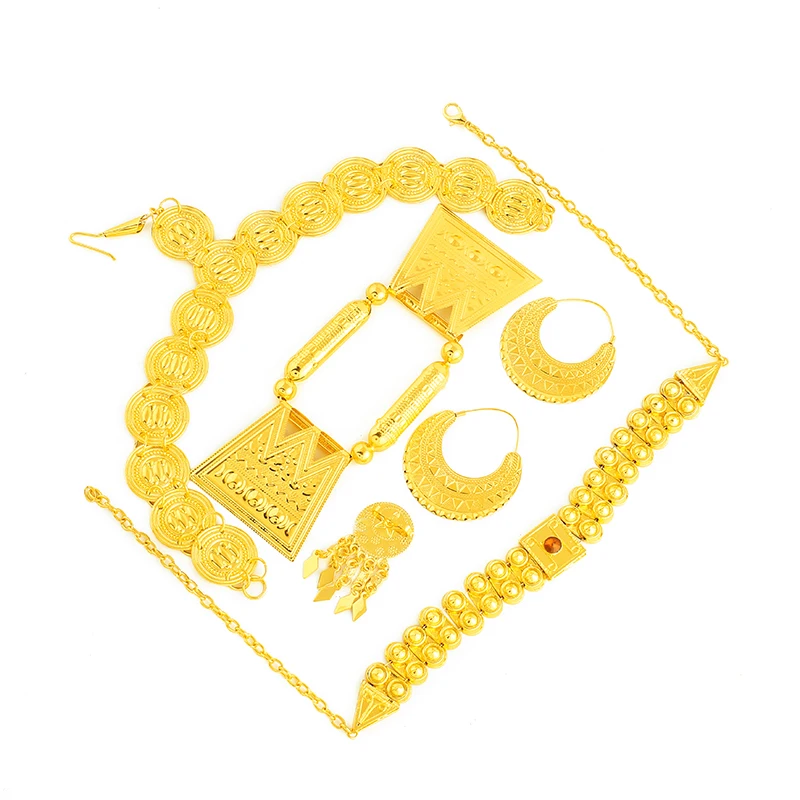 مجموعات مجوهرات الزفاف التقليدية الإريترية اللون الفضي/الذهبي من Ethlyn خمس قطع مجموعات قلادة S84