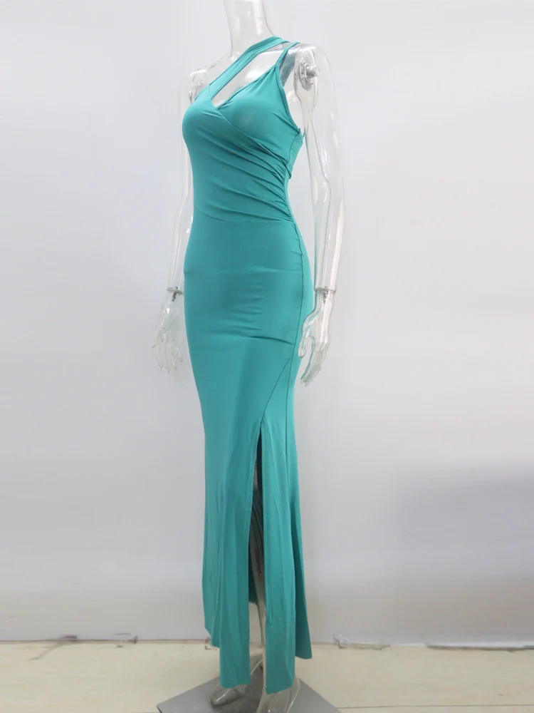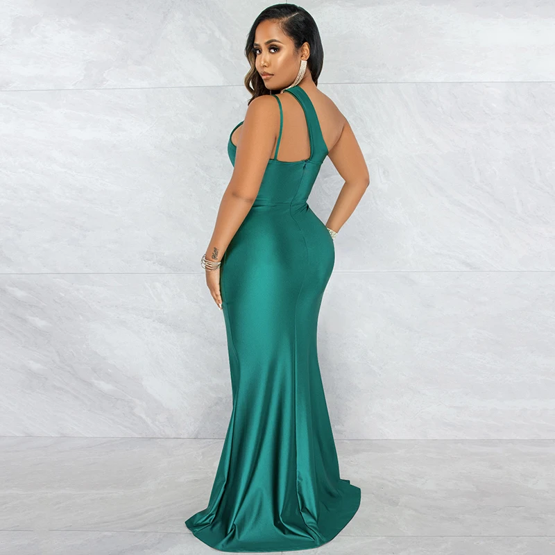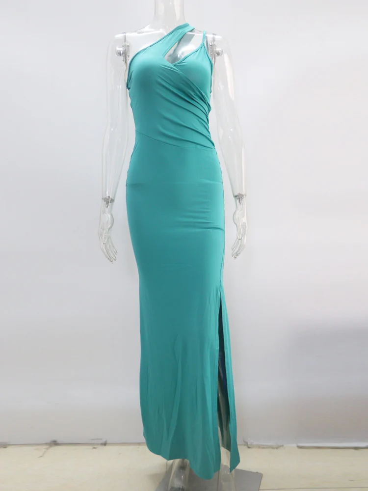 Bonnie Fores موضة جديدة الزمرد الأخضر ثنيات الشق فستان ماكسي