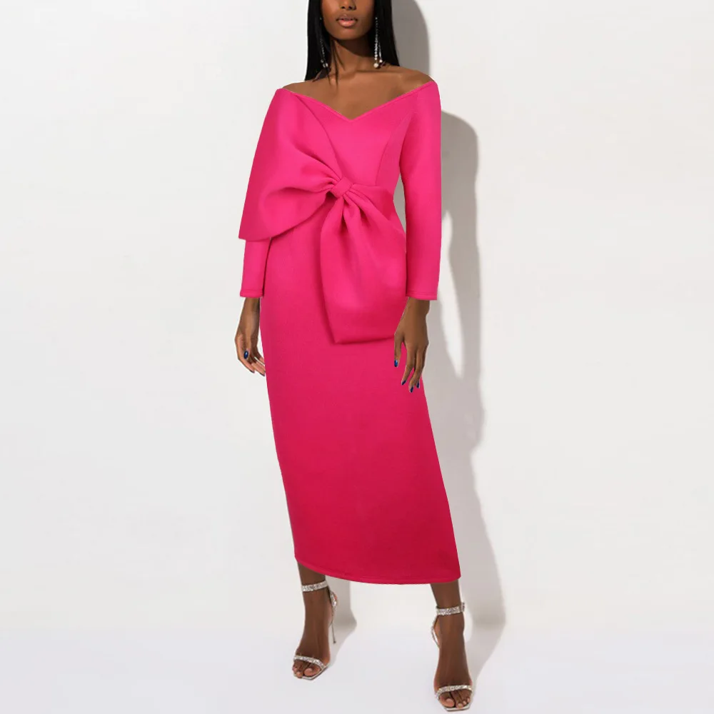 LKF 2023 جديد قسط فستان مثير عميق الخامس Bowknot عالية الخصر الورك التفاف S-XXXL فستان سهرة ظهر سستة