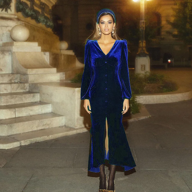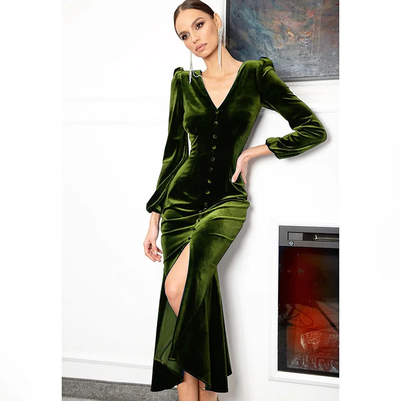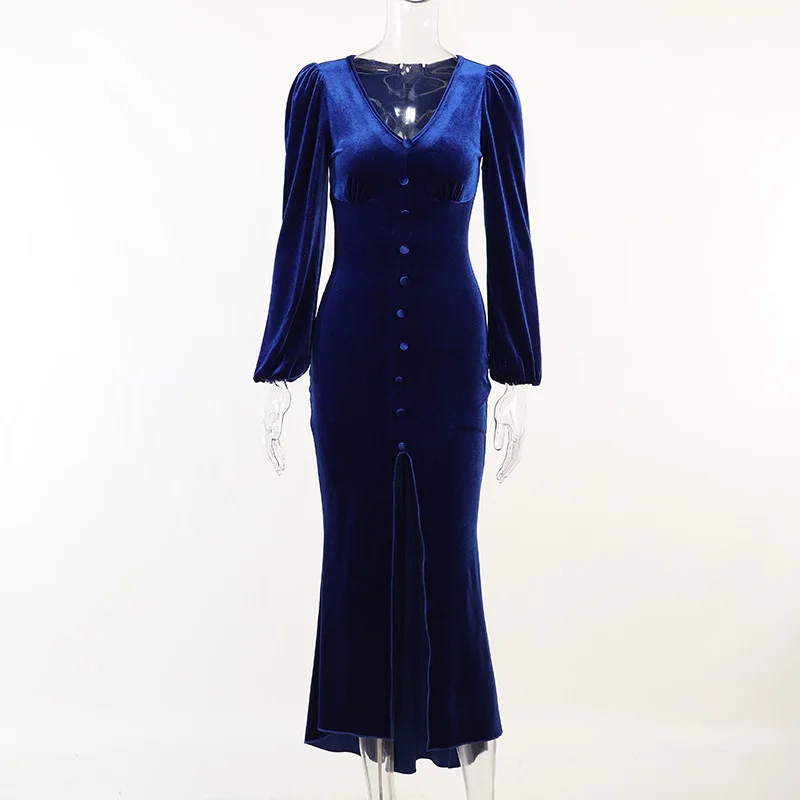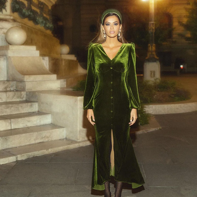 Sylph أنيقة المخملية زر مثير Y2K الملابس الخامس الرقبة طويلة الأكمام Bodycon فساتين متوسطة الطول للنساء 2022 نادي حفلة