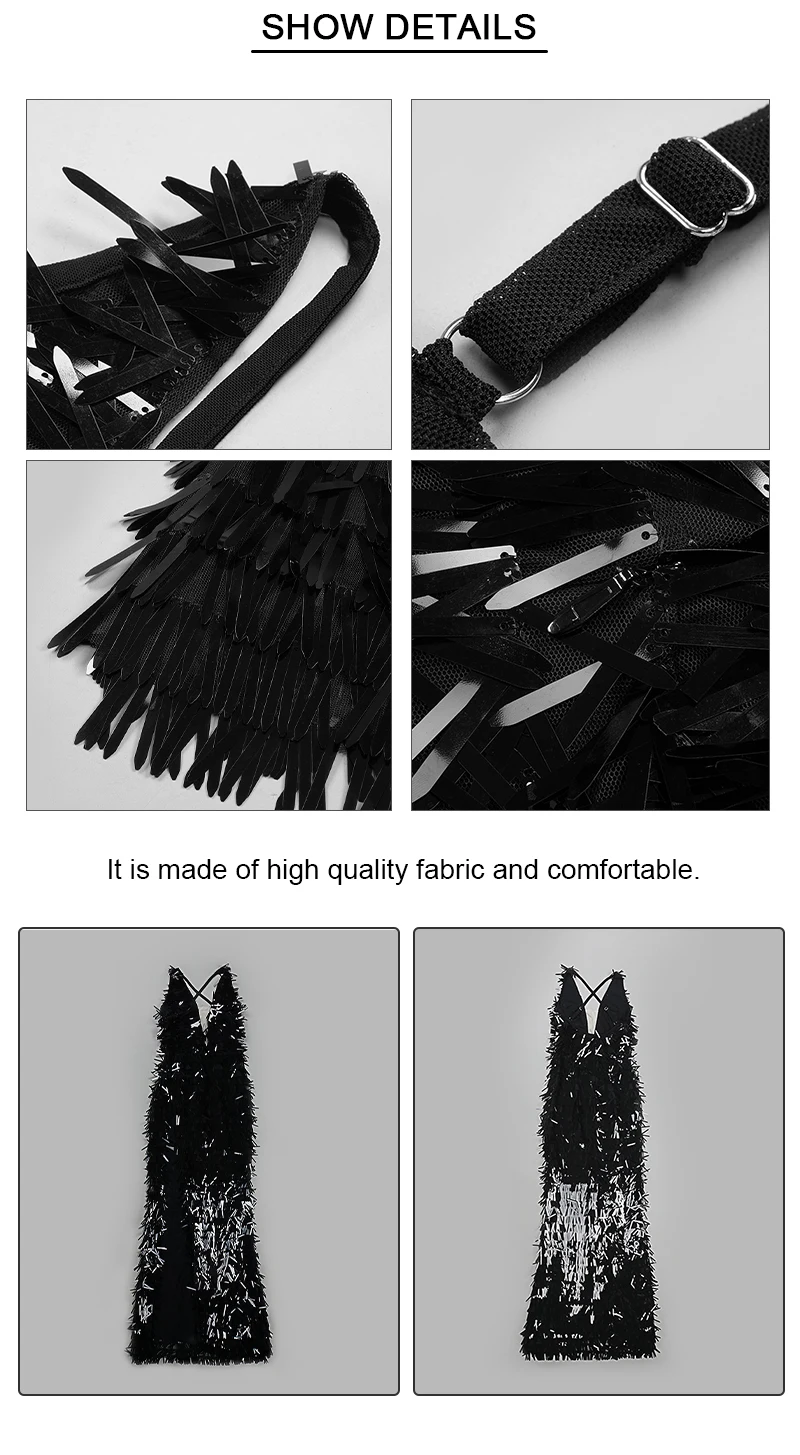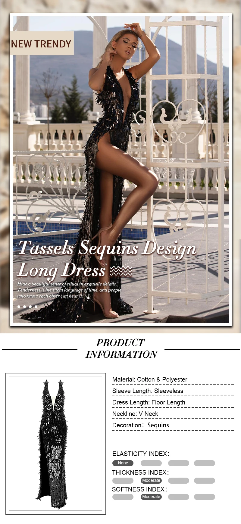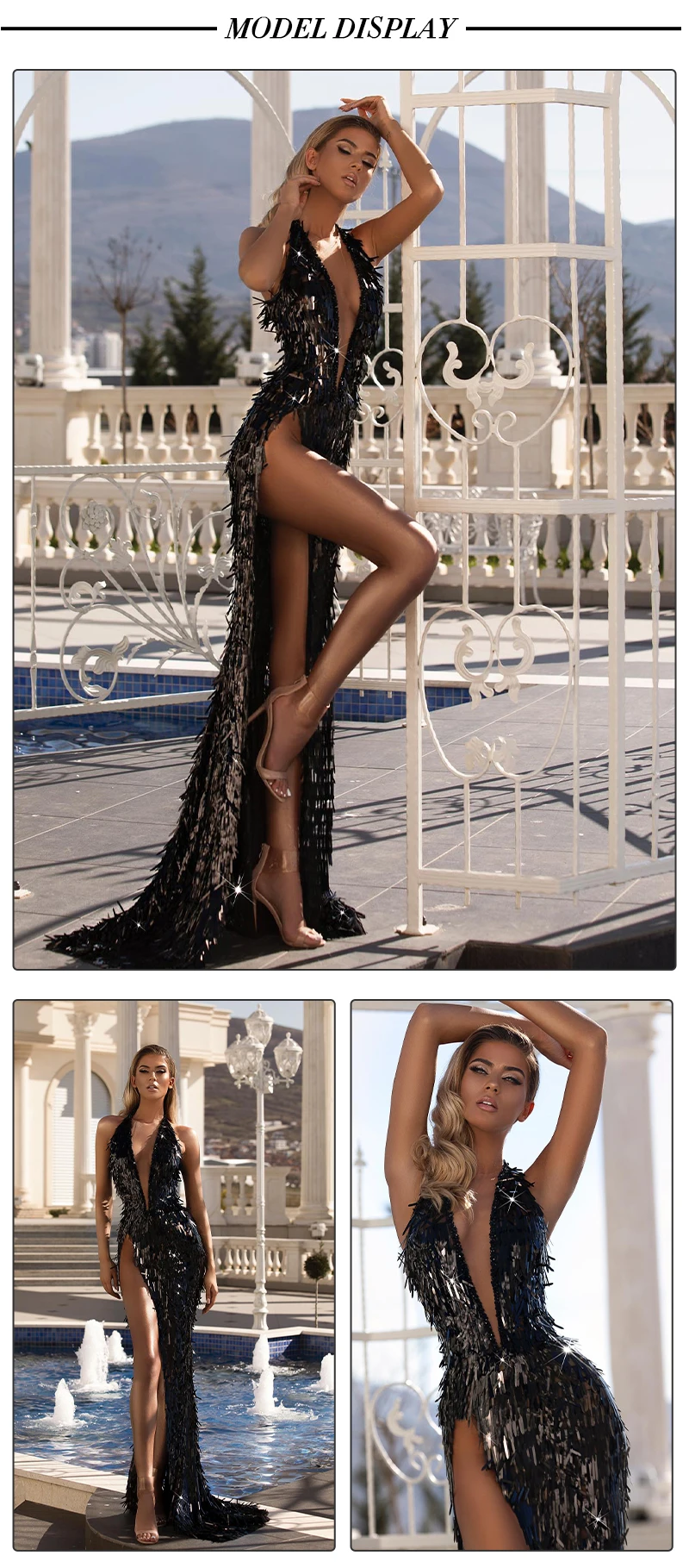 VC فستان أسود لحفلات الكوكتيل صيف 2022 جديد عصري براق الترتر الخامس الرقبة فستان طويل Mujer Vestidos