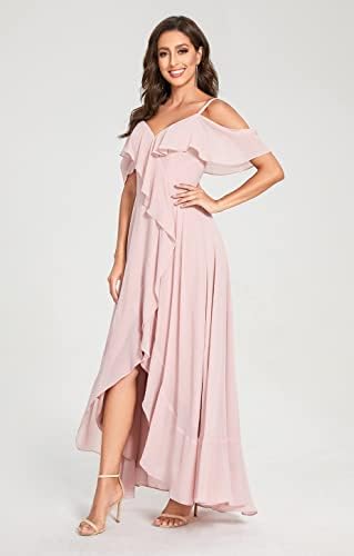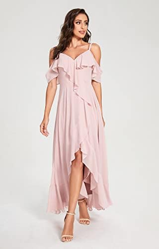 YMSHA فساتين وصيفة العروس شيفون برقبة على شكل حرف V للنساء فستان سهرة رسمي بكشكشة مرتفعة ومنخفضة للبنات YMS134