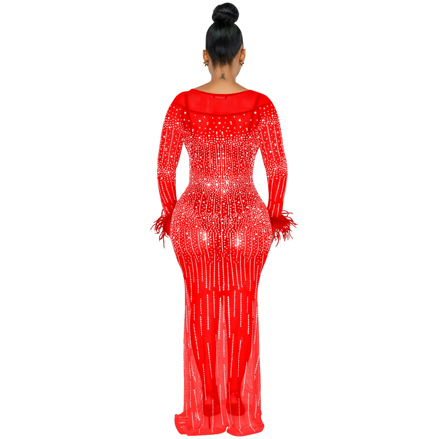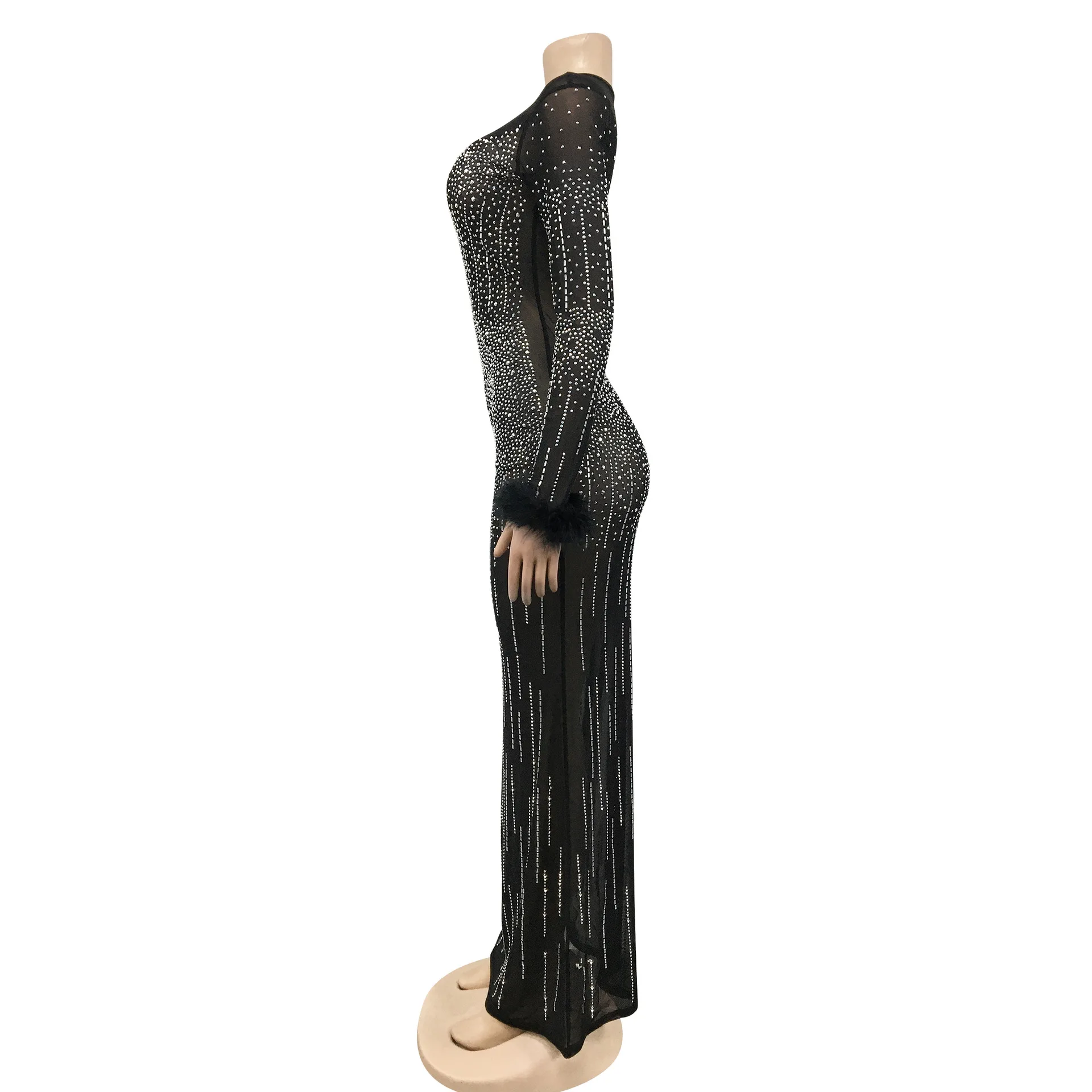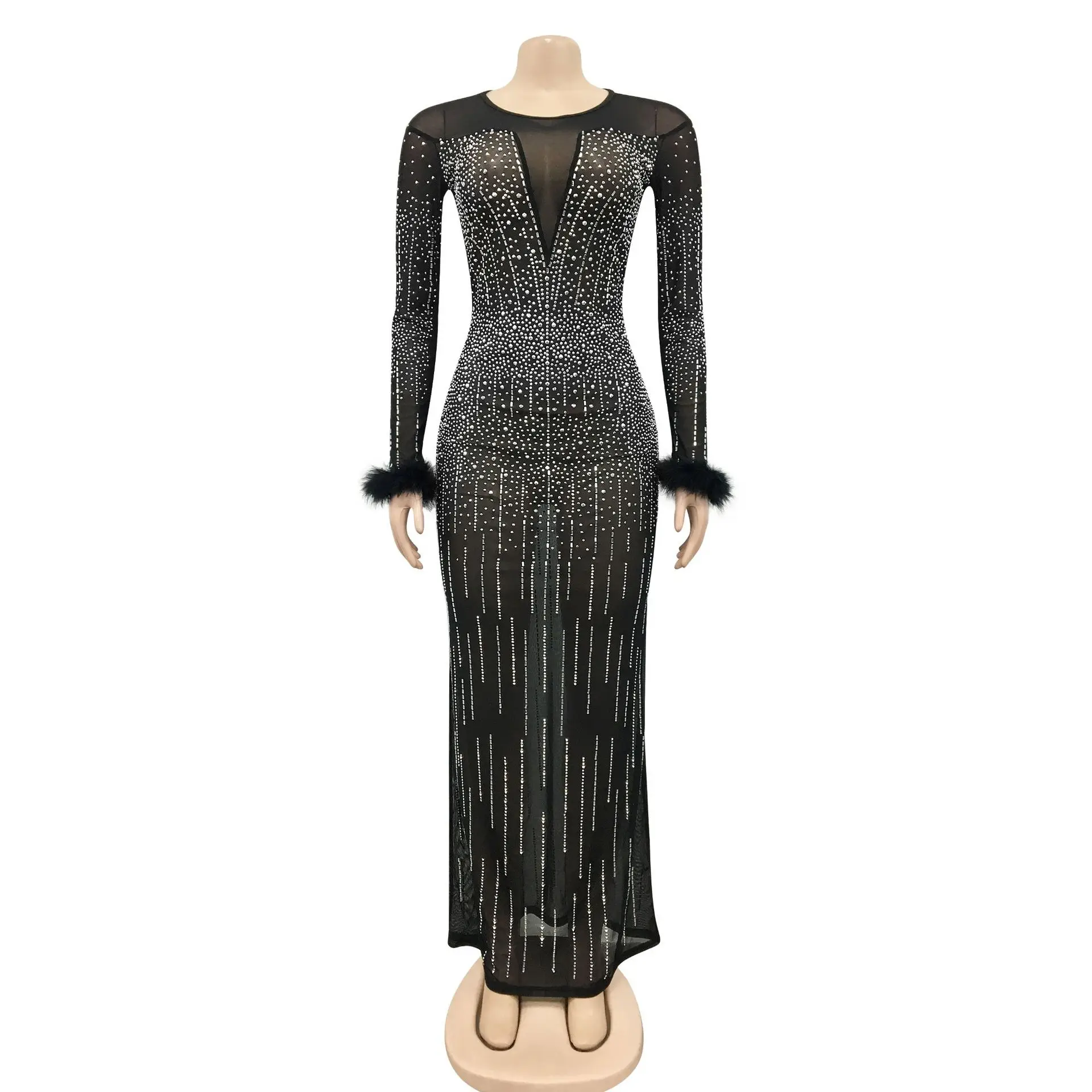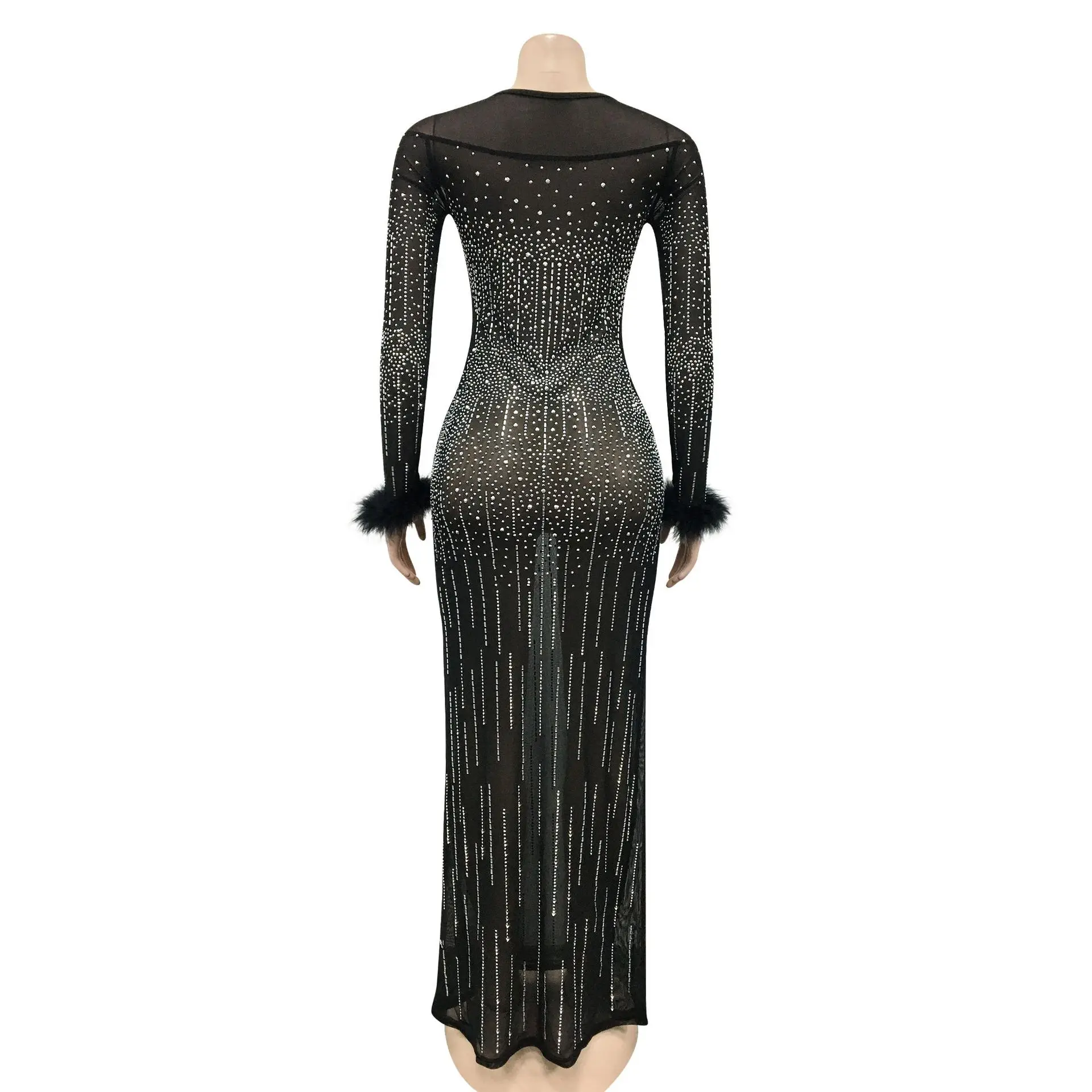 Zoctuo عيد ميلاد فستان فستان أنيق بريق شبكة مرصعة بالكريستال انظر من خلال طول الأرض ماكسي حفلة نادي الشارع ملابس