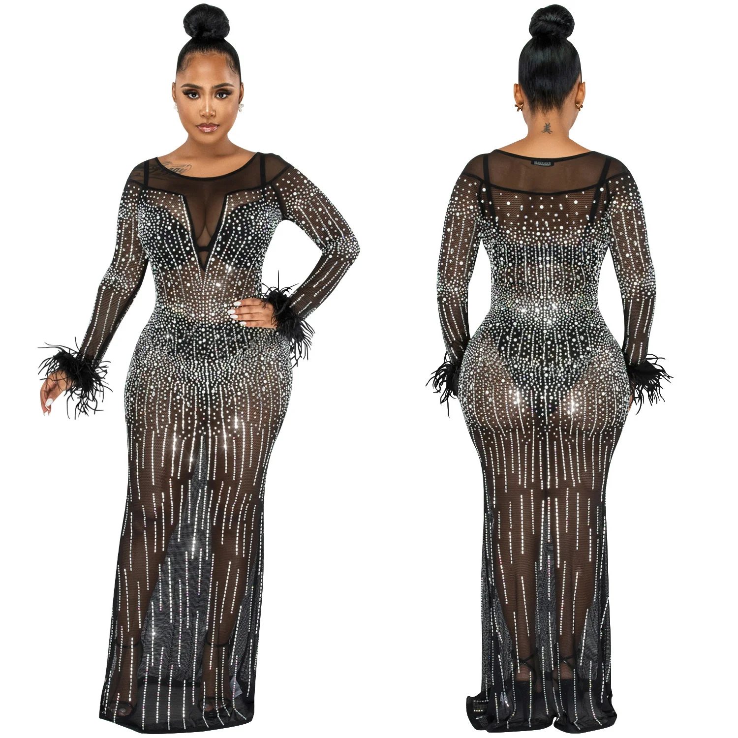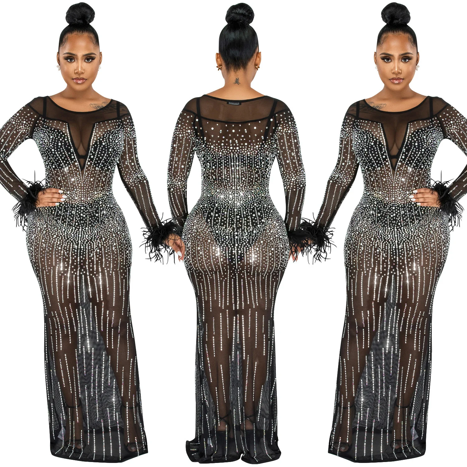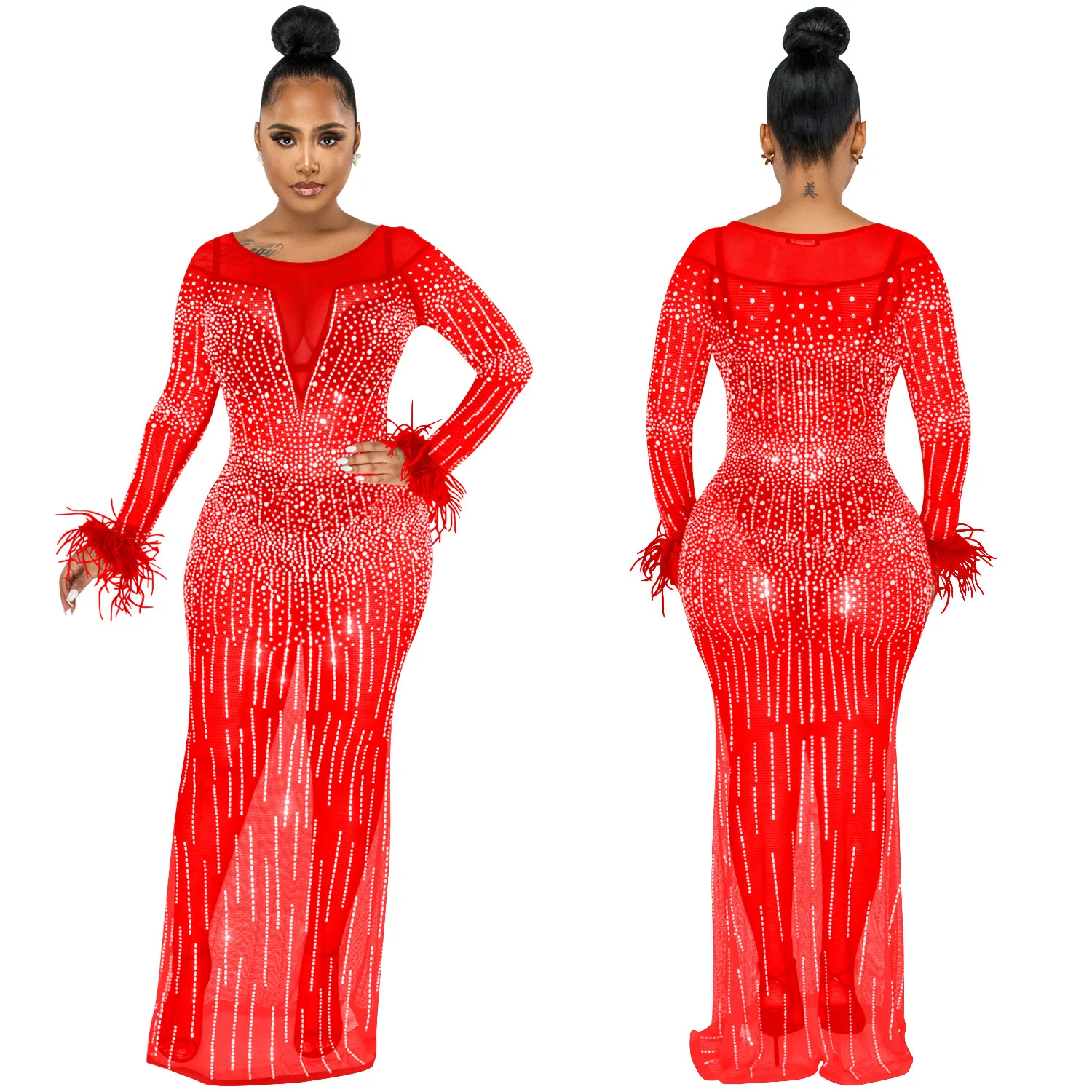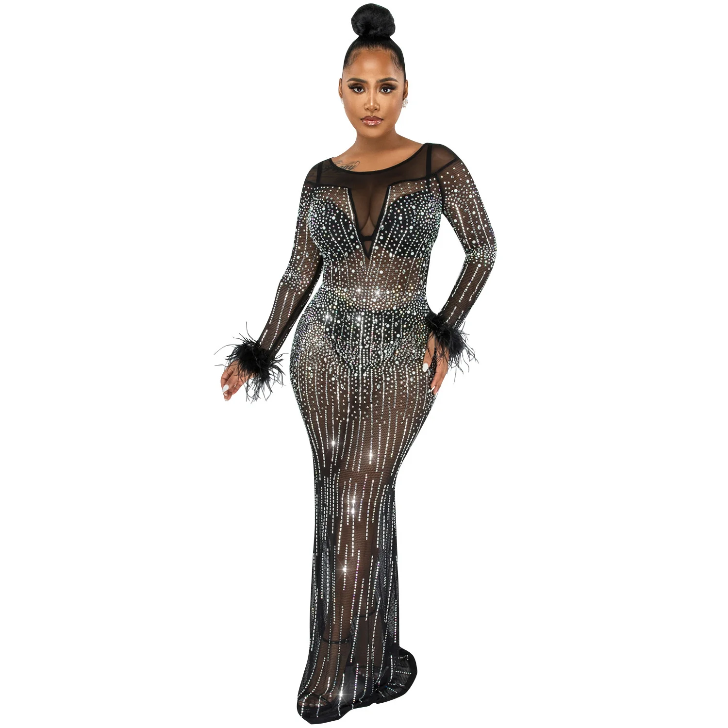 Zoctuo عيد ميلاد فستان فستان أنيق بريق شبكة مرصعة بالكريستال انظر من خلال طول الأرض ماكسي حفلة نادي الشارع ملابس